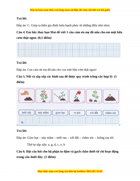 Câu 5. Nối và sắp xếp các hình sau để được quy trình trồng cây hợp lý: (1 điểm) Trả lời: