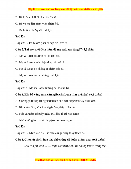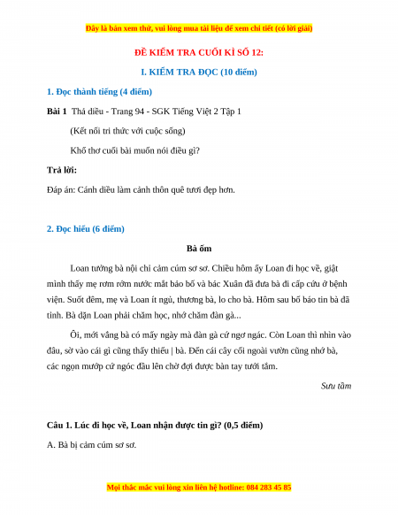 2. Đọc hiểu (6 điểm) Bà ốm