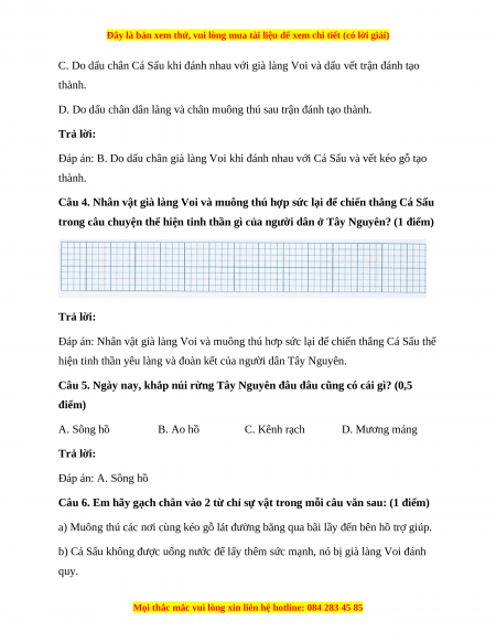Câu 4. Nhân vật già làng Voi và muông thú hợp sức lại để chiến thắng Cá Sấu