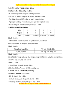 II. Kiểm tra đọc hiểu (6 điểm) Câu 1 2 3 4 Đáp án B A B C Điểm 0,5 điểm 0,5 điểm 0,5 điểm 0,5 điểm