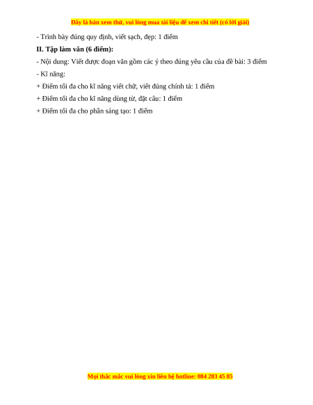 - Viết đúng chính tả (không mắc quá 5 lỗi): 1 điểm
