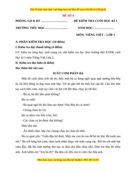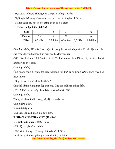 A. PHẦN KIỂM TRA ĐỌC (10 điểm)