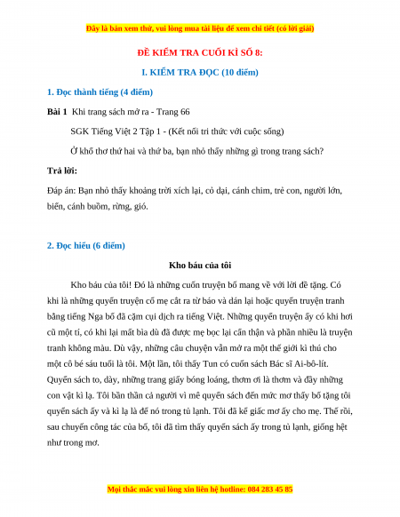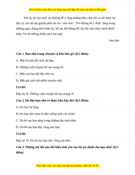 2. Đọc hiểu (6 điểm) Kho báu của tôi