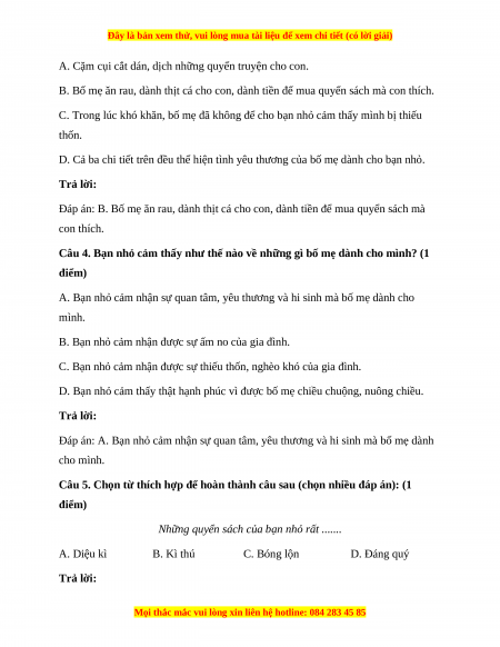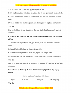 D. Cả ba chi tiết trên đều thể hiện tình yêu thương của bố mẹ dành cho bạn nhỏ. Trả lời: