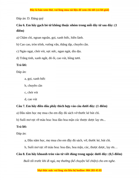 Đây là bản xem thử, vui lòng mua tài liệu để xem chi tiết (có lời giải)