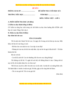 Đề thi cuối kì 1 Tiếng Việt lớp 2 Kết nối tri thức (Đề 9)