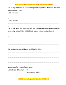 Câu 3: Câu “Tôi là một chú Chuột Túi bé con.” thuộc kiểu câu nào? (0,5 điểm) A. Ai là gì? B. Ai làm gì? C. Ai thế nào?