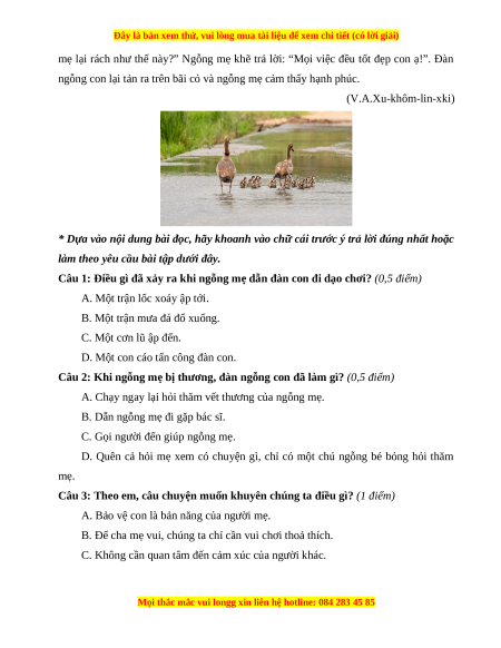 Câu 2: Khi ngỗng mẹ bị thương, đàn ngỗng con đã làm gì? (0,5 điểm)