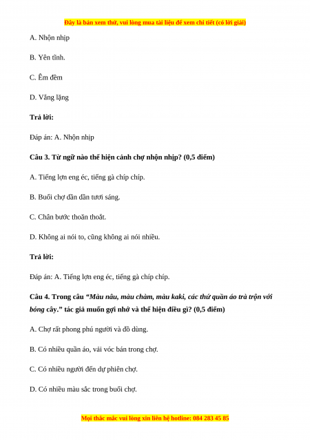 Câu 3. Từ ngữ nào thể hiện cảnh chợ nhộn nhịp? (0,5 điểm)