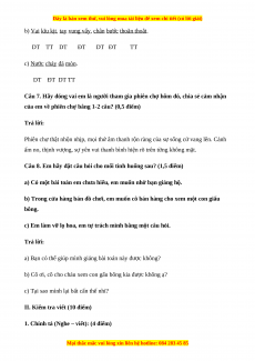 Câu 6. Xác định Danh từ (DT), tính từ (TT), động từ (DT) trong câu văn sau: (1,5 điểm)