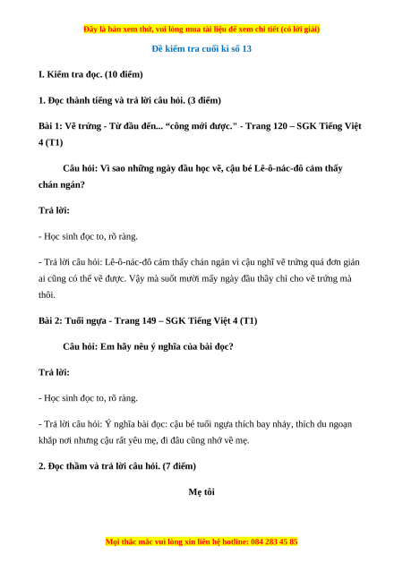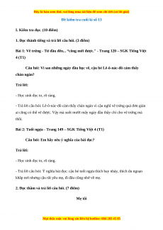 1. Đọc thành tiếng và trả lời câu hỏi. (3 điểm)