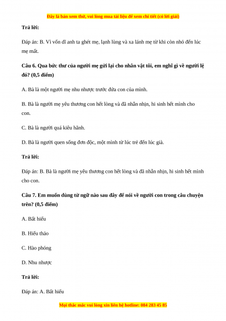 Câu 6. Qua bức thư của người mẹ gửi lại cho nhân vật tôi, em nghĩ gì về người lệ