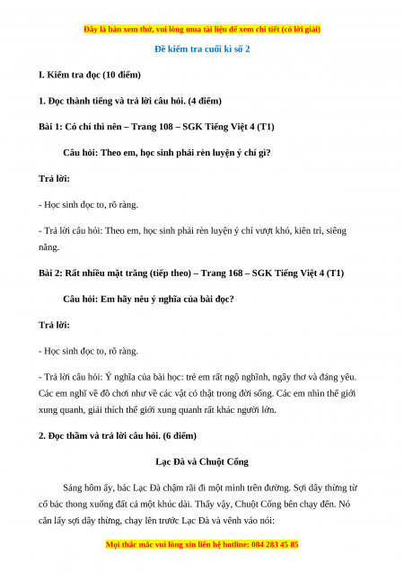 I. Kiểm tra đọc (10 điểm)