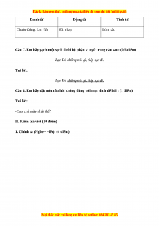 Câu 7. Em hãy gạch một sạch dưới bộ phận vị ngữ trong câu sau: (0,5 điểm)