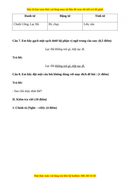 II. Kiểm tra viết (10 điểm)