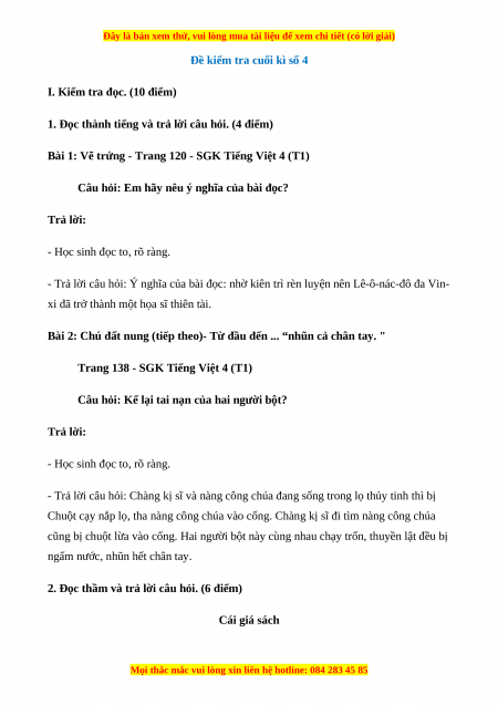 1. Đọc thành tiếng và trả lời câu hỏi. (4 điểm)