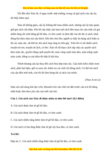 Câu 1. Giá sách của Xtác-đi được miêu tả như thế nào? (0,5 điểm)