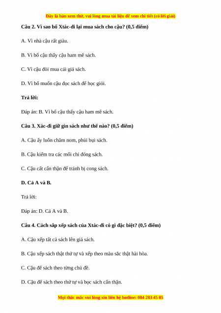 Câu 2. Vì sao bố Xtác-đi lại mua sách cho cậu? (0,5 điểm) A. Vì nhà cậu rất giàu.