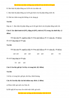Câu 8. Xác định danh từ (DT), động từ (ĐT), tính từ (TT) trong câu dưới đây: (1