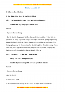 2. Đọc thầm và trả lời câu hỏi. (6 điểm)