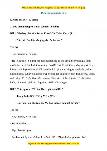 1. Đọc thành tiếng và trả lời câu hỏi. (4 điểm)