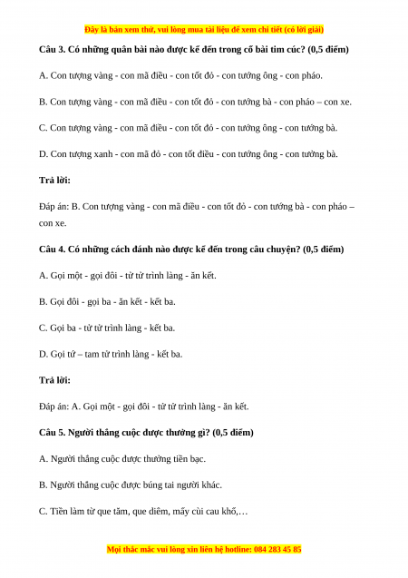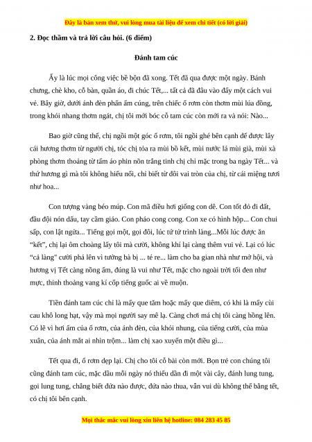 2. Đọc thầm và trả lời câu hỏi. (6 điểm) Đánh tam cúc
