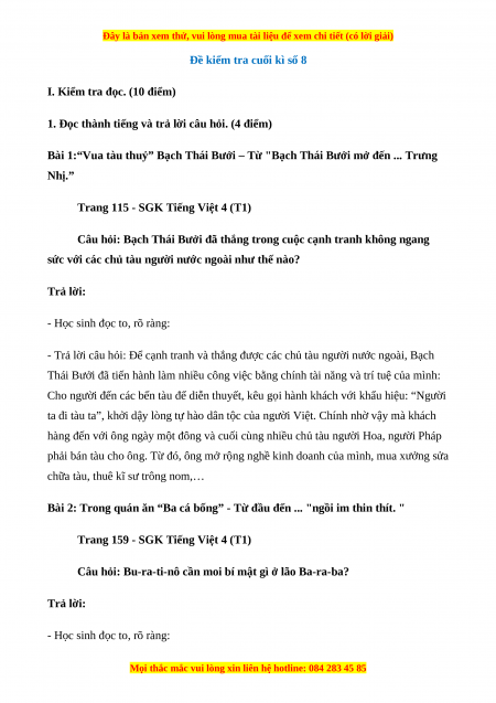 1. Đọc thành tiếng và trả lời câu hỏi. (4 điểm)