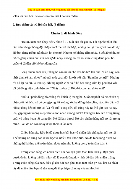 2. Đọc thầm và trả lời câu hỏi. (6 điểm)