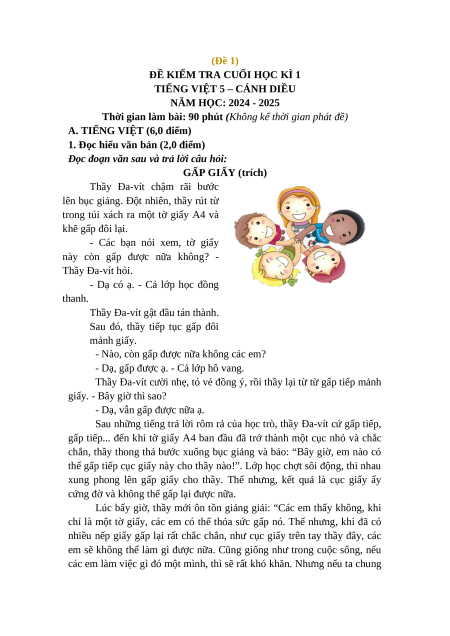 Đề thi cuối kì 1 Tiếng Việt lớp 5 Cánh Diều (Đề 1)