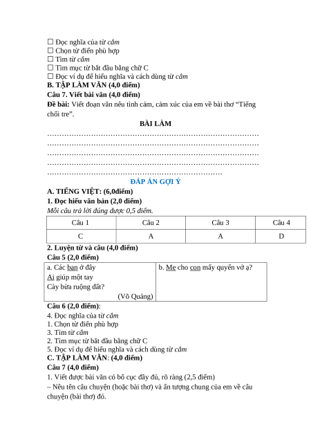 C. TẬP LÀM VĂN: (4,0 điểm) Câu 7 (4,0 điểm)