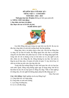 TIẾNG VIỆT 5 – CÁNH DIỀU NĂM HỌC: 2024 - 2025