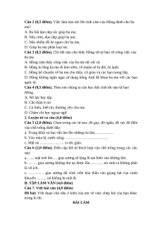 Câu 4 (0,5 điểm). Theo em chúng ta cần học đức tính tốt nào từ bạn Hồng. A. Nỗ lực học tập. B. Cẩn thận tỉ mỉ