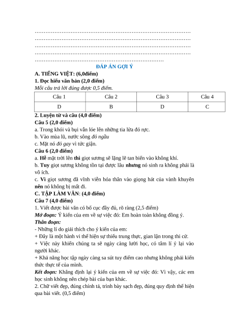 2. Luyện từ và câu (4,0 điểm) Câu 5 (2,0 điểm)