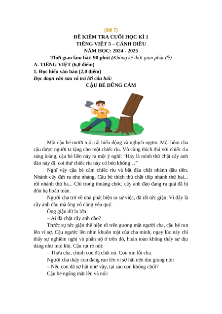 Đề thi cuối kì 1 Tiếng Việt lớp 5 Cánh Diều (Đề 7)