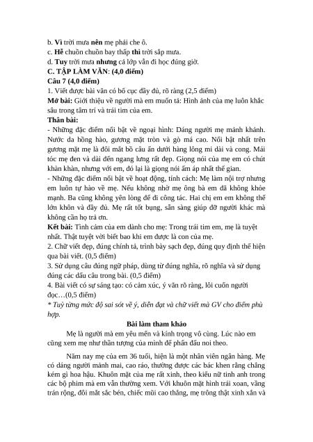 C. TẬP LÀM VĂN: (4,0 điểm) Câu 7 (4,0 điểm)
