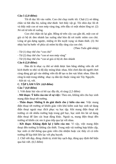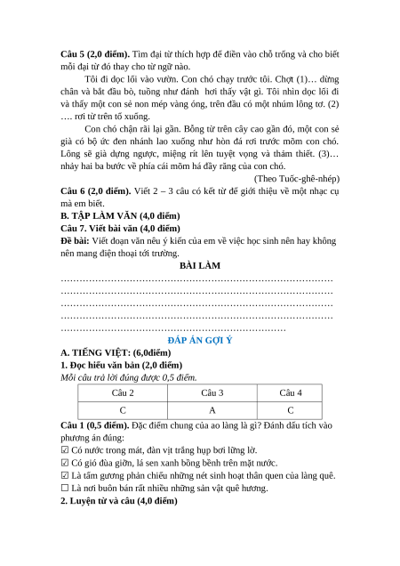 2. Luyện từ và câu (4,0 điểm) Câu 5 (2,0 điểm):