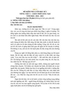 - Tailieugiaovien.com.vn giới thiệu bộ đề cuối kì 1 gồm đầy đủ ma trận và lời giải chi tiết môn Tiếng Việt lớp 5 Chân trời sáng tạo mới nhất năm 2024 nhằm giúp Giáo viên có thêm tài liệu tham khảo ra đề thi Tiếng Việt lớp 5.