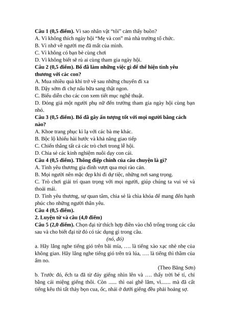 2. Luyện từ và câu (4,0 điểm) Câu 5 (2,0 điểm).