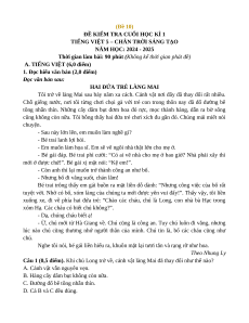 TIẾNG VIỆT 5 – CHÂN TRỜI SÁNG TẠO NĂM HỌC: 2024 - 2025