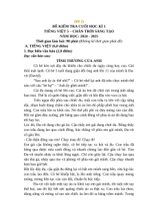 - Tailieugiaovien.com.vn giới thiệu bộ đề cuối kì 1 gồm đầy đủ ma trận và lời giải chi tiết môn Tiếng Việt lớp 5 Chân trời sáng tạo mới nhất năm 2024 nhằm giúp Giáo viên có thêm tài liệu tham khảo ra đề thi Tiếng Việt lớp 5.