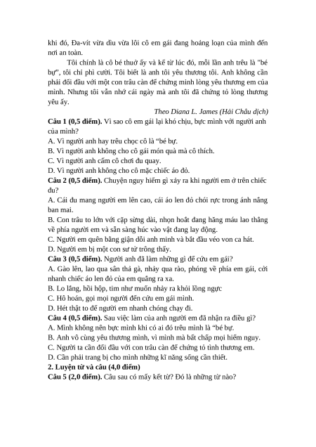 2. Luyện từ và câu (4,0 điểm) Câu 5 (2,0 điểm):