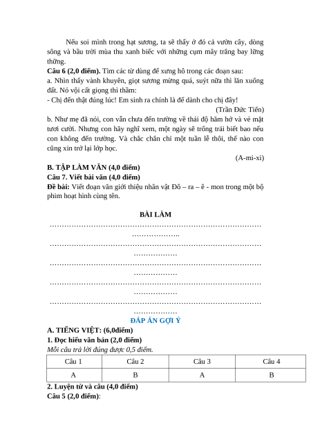 B. TẬP LÀM VĂN (4,0 điểm)