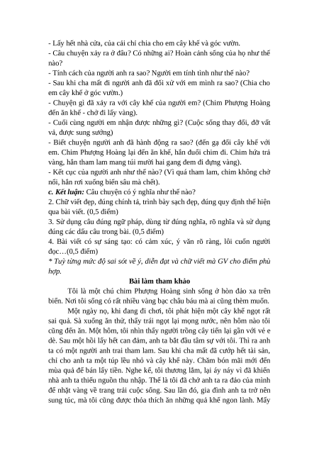 * Tuỳ từng mức độ sai sót về ý, diễn đạt và chữ viết mà GV cho điểm phù hợp. Bài làm tham khảo