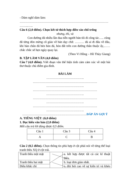 2. Luyện từ và câu (4,0 điểm) Câu 5 (2,0 điểm)