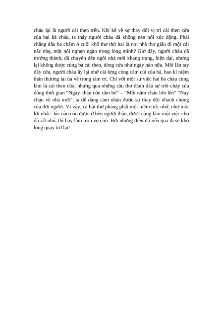 niệm tuổi thơ của mình. Ngày cháu còn bé, để đóng cửa, cháu là người