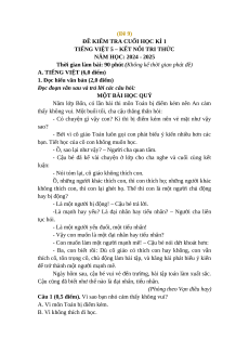 - Tailieugiaovien.com.vn giới thiệu bộ đề cuối kì 1 gồm đầy đủ ma trận và lời giải chi tiết môn Tiếng Việt lớp 5 Kết nối tri thức mới nhất năm 2024 nhằm giúp Giáo viên có thêm tài liệu tham khảo ra đề thi Tiếng Việt lớp 5.