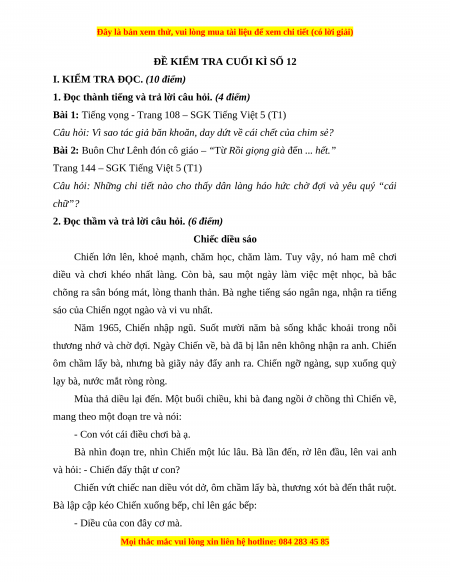 Đề thi cuối kì 1 Tiếng Việt lớp 5 năm 2023 (Đề 12)