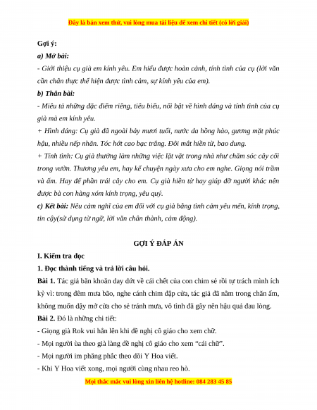 - Giới thiệu cụ già em kính yêu. Em hiểu được hoàn cảnh, tính tình của cụ (lời văn