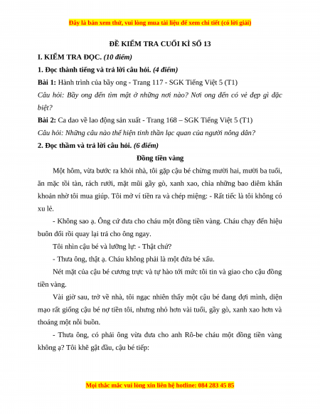 ĐỀ KIỂM TRA CUỐI KÌ SỐ 13