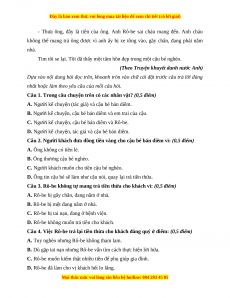 Câu 3. Rô-be không tự mang trả tiền thừa cho khách vì: (0,5 điểm)